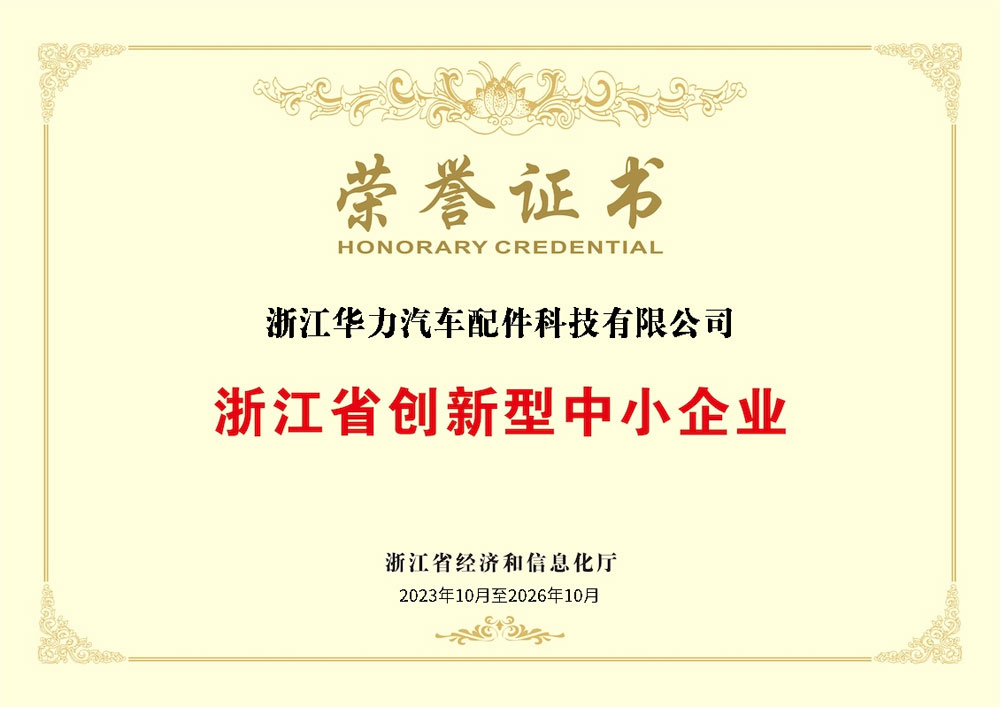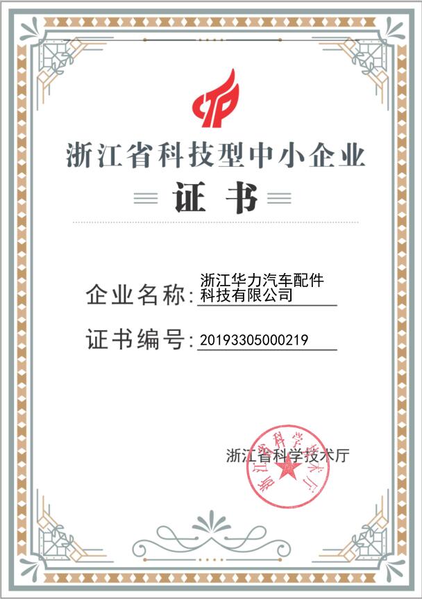 浙江省創(chuàng)新型中小企業(yè)榮譽(yù)證書